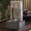 Fountains have long been believed to hold restorative powers to soothe your spirit. This distinctive fountain features the sound of cascading water, soft glowing light, and striking architectural design that makes it a tranquil addition to your living space. 2W Submersible water pump included. 2 pounds. 6 x 4 x 9.75 inches tall. Power cord: 80 inches long. Polyresin and plastic.